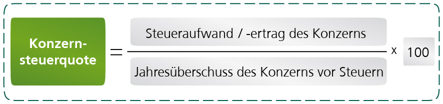 Der Steueraufwand/-ertrag ist dabei definiert als Summe aus tatsächlichem und latentem Ertragsteueraufwand/-ertrag. Eine aussagekräftige Konzernsteuerquote setzt voraus, dass die steuerlichen Verhältnisse aller in- und ausländischen Tochtergesellschaften nebst steuerlichen Besonderheiten, wie z.B. Quellensteuerbelastungen oder Nichtabzugsfähigkeit von Finanzierungsaufwendungen, dargestellt werden. Ohne Kenntnis seiner eigenen Konzernsteuerquote lässt sich das Gestaltungspotenzial kaum identifizieren.