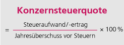 Per Definition gibt die Konzernsteuerquote den durchschnittlichen effektiven Steuersatz des Konzerns wieder. Die Ermittlung vollzieht sich folgendermaßen: