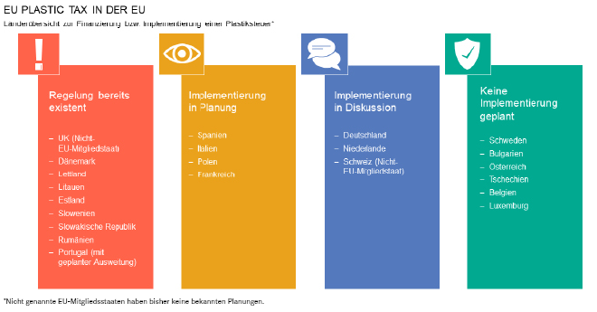 Aus dem Koalitionsvertrag der Deutschen Bundesregierung vom 7. Dezember 2021 geht hervor, dass die im Rahmen der EU bereits bestehende Plastik-Abgabe wie in anderen europäischen Ländern auch auf die Her­steller und Inverkehrbringer umgelegt wird, womit dann eine „Plastiksteuer“ neu eingeführt würde.