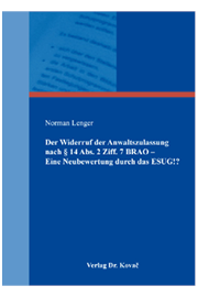 Buchveröffentlichung: Der Widerruf der Anwaltszulassung nach § 14 Abs. 2 Ziff. 7 BRAO