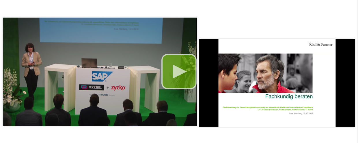Den vollständigen Vortrag hielt Dr. Christiane Bierekoven im Rahmen der it-sa-Messe 2016, der Fachmesse für Internet-Security, die vom 10. bis zum 12. Oktober in Nürnberg stattfand.