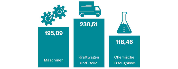 Top 3 deutscher Exportgüter in Mrd. Euro im Jahr 2018
