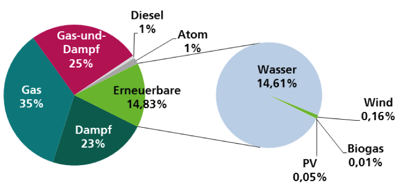 Die Lage auf dem iranischen Strommarkt ist bis heute v.a. durch konventionelle Energieträger geprägt. Das kommt nicht zuletzt daher, dass der Iran über große Öl- und Gasreserven verfügt. Des Weiteren ist in Bushehr erst seit 2013 das erste Kernkraftwerk mit einer Kapazität von 700 MW voll einsatzbereit. 2 weitere Kraftwerksblöcke mit jeweils einer Kapazität von 1.000 MW sind in Bushehr geplant.1