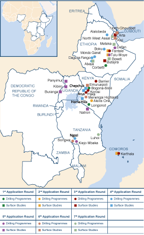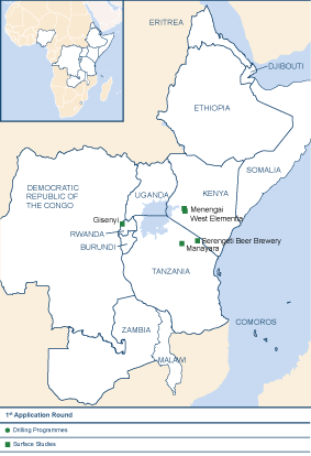 Wie bereits erwähnt, ist Ostafrika eine der tektonisch aktivsten Regionen der Erde. Im sogenannten Rift Valley erzeugen driftende tektonische Platten Temperaturen unter der Erdoberfläche, die nicht nur zur Erzeugung von Wärme (Direktnutzung), sondern auch von Strom effizient und kostengünstig genutzt werden können. Das Rift Valley lässt sich in einen östlichen und einen westlichen Arm unterteilen, wobei sich ersterer von Äthiopien über Kenia bis nach Nordtansania erstreckt. Der westliche Arm hingegen erstreckt sich vom Kongo über Uganda, Ruanda, Burundi, Südtansania und Sambia bis nach Mosambik (Ring 2014).