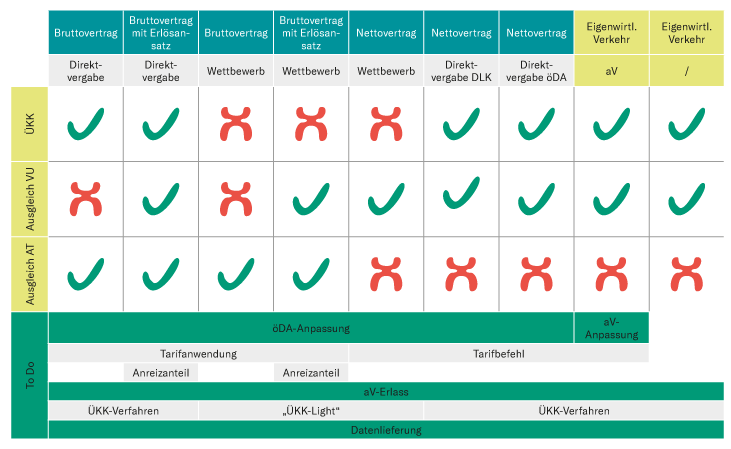 Eine Ergänzung bestehender öffentlicher Dienstleistungsaufträge durch Neuaufnahme von Regelungen zum Deutschland-Ticket könnte durch Etablierung neuer Zahlungsansprüche und Zahlungsflüsse das Risiko einer De-facto-Vergabe hervorrufen. Zur Vermeidung dieses vergaberechtlichen Risikos kann es sich daher anbieten, „neben” dem öffentlichen Dienstleistungsauftrag eine allgemeine Vorschrift mit dem Inhalt „Höchsttarif Deutschland-Ticket” zu erlassen. Die Verzahnung beider Regelungen erfordert sodann, dass für die jeweilige gemeinwirtschaftliche Verpflichtung ein gesonderter Ausgleichsbedarf nachgewiesen werden kann und Regelungen zum Nachweis der Ex-post-Kontrolle klar formuliert sind.