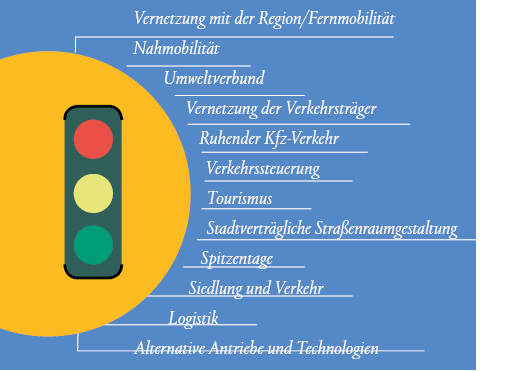Abbildung 1: Die 12 identifizierten Handlungsfelder werden in einem integrierten Verkehrskonzept konkretisiert und miteinander verbunden.