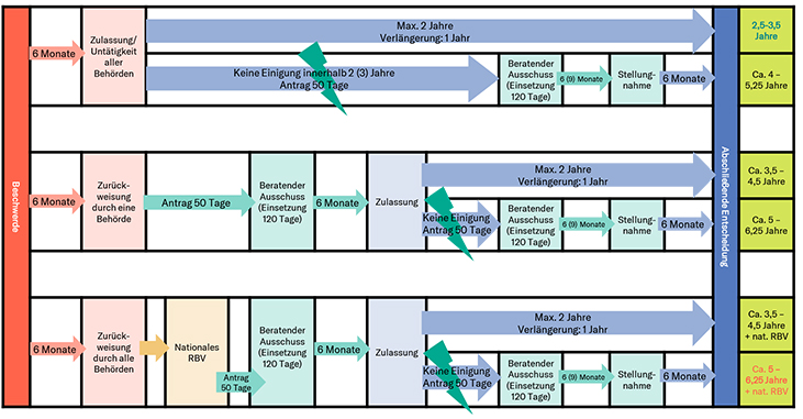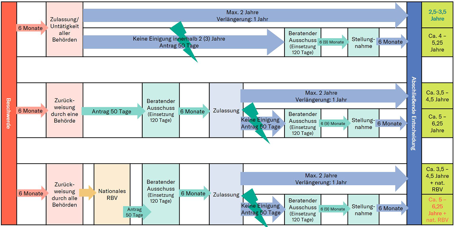 Je nach Verfahrensvariante lässt sich die Verfahrensdauer einer EU-Streitbeilegung kalkulieren. Im besten Fall beläuft es sich auf 2,5 Jahre und liegt damit wie angestrebt deutlich unter der üblichen Verfahrensdauer in einem DBA-Verständigungsverfahren – damit wäre ein wesentlicher Fortschritt für den Rechtsschutz des Steuerpflichtigen in Doppelbesteuerungsstreitigkeiten erreicht. Unter Berücksichtigung aller Eskalationsstufen kann sich allerdings auch eine Verfahrensdauer von bis zu 6 ¼ Jahren zuzüglich der Dauer der nationalen Rechtsbehelfsverfahren gegen eine Zurückweisung der Streitbeilegungsbeschwerde ergeben. Erhebliche Zeitvorteile bringt das EU-Streitbeilegungsverfahren dann nicht mehr – es bleibt aber die Maximalbegrenzung, die es in dieser Form in anderen Verfahren (noch) nicht gibt.