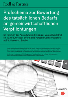 Rödl & Partner hat eine Checkliste erstellt, mit der Aufgabenträger vor Erlass eines öffentlichen Dienstleistungsauftrags oder einer allgemeinen Vorschrift eine möglichst sichere Bedarfsprüfung durchführen können.