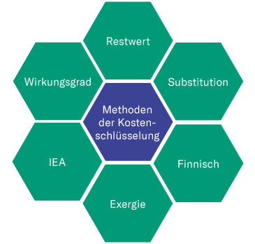 Im Vergleich zu allen anderen Methoden berücksichtigt die Restwertmethode keine technischen Parameter, sondern zieht ausschließlich ökonomische Aspekte für die Bewertung der Produkte heran. Eines der beiden Koppelprodukte wird als Hauptprodukt definiert, wobei Strom aufgrund der durch den Versorger nicht beeinflussbaren Strompreise in der Regel als Hauptprodukt gewählt wird.