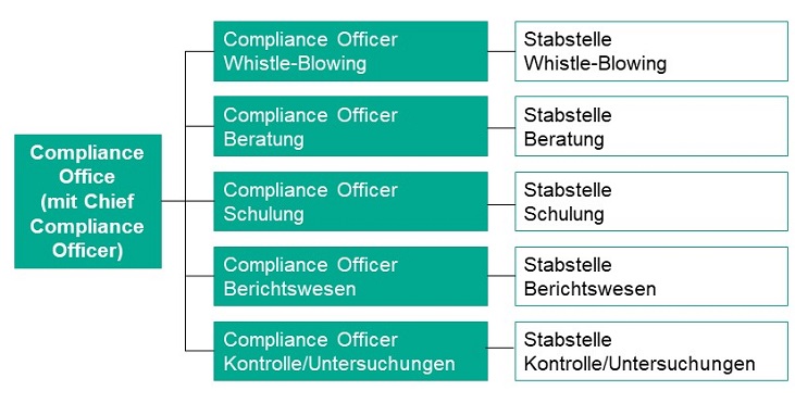 Es gibt jedoch auch Organisationsstrukturen, in denen der Compliance-Abteilung die fachliche Koordination nicht zugesprochen wird. Grund dafür ist der von Unternehmen befürchtete, innere Konflikt des Compliance-Beauftragten (Chief Compliance Officer) als „Vertrauensperson” des Unternehmens, wenn er neben seiner Rolle als Ansprechpartner zu Compliance-Fragen und der damit einhergehenden Beratungstätigkeit gegenüber den Mitarbeitern auch in die Verfolgung von Fehlverhalten eingebunden ist. Dies ist nicht ohne Weiteres von der Hand zu weisen. Nachdem die Ahndung etwaigen Fehlverhaltens allerdings einer der Kernbestandteile jedes Compliance-Management-Systems ist, stellt es sich als empfehlenswert heraus, den Compliance-Beauftragten zumindest informatorisch in die Verfolgung und Ahndung von Compliance-Verstößen einzubinden.
