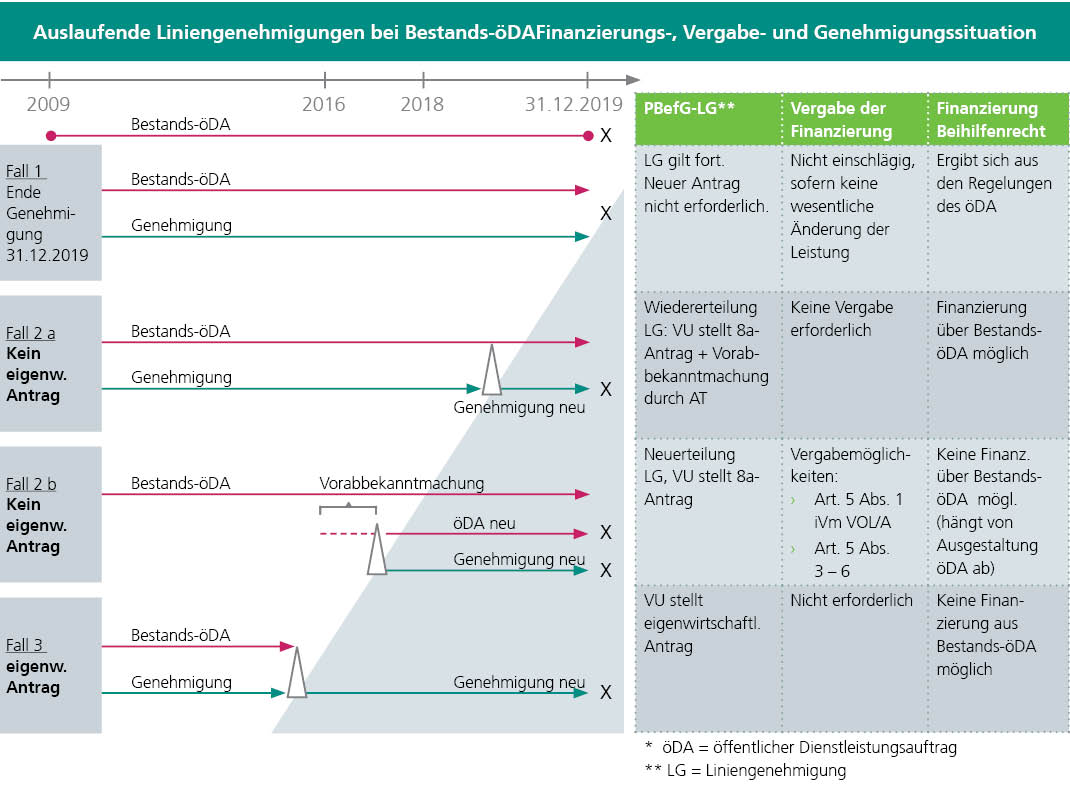 Abbildung 1: Auslaufende Liniengenehmigungen bei Bestands-öDAFinanzierungs-, Vergabe- und Genehmigungssituation (Zum Vergrößern bitte auf die Grafik klicken).