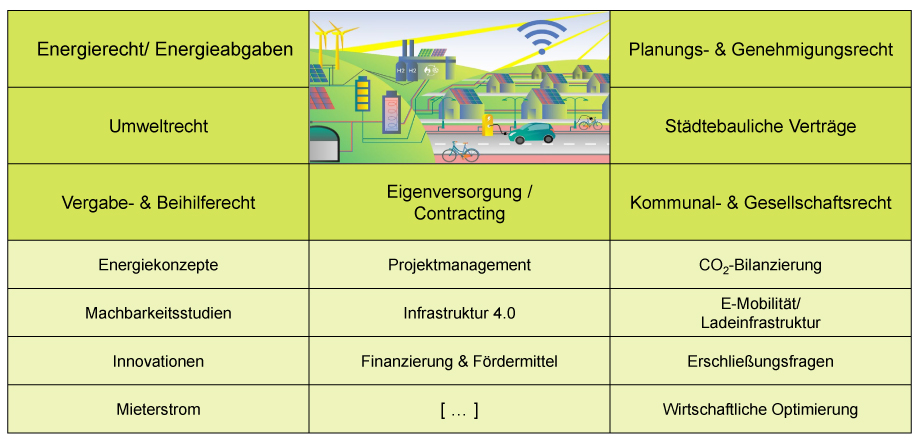 • Begleitung von Maßnahmen bei der Umsetzung, z.B. bei Wind- und PV-Anlagen oder Nah- und Fernwärmenetzen