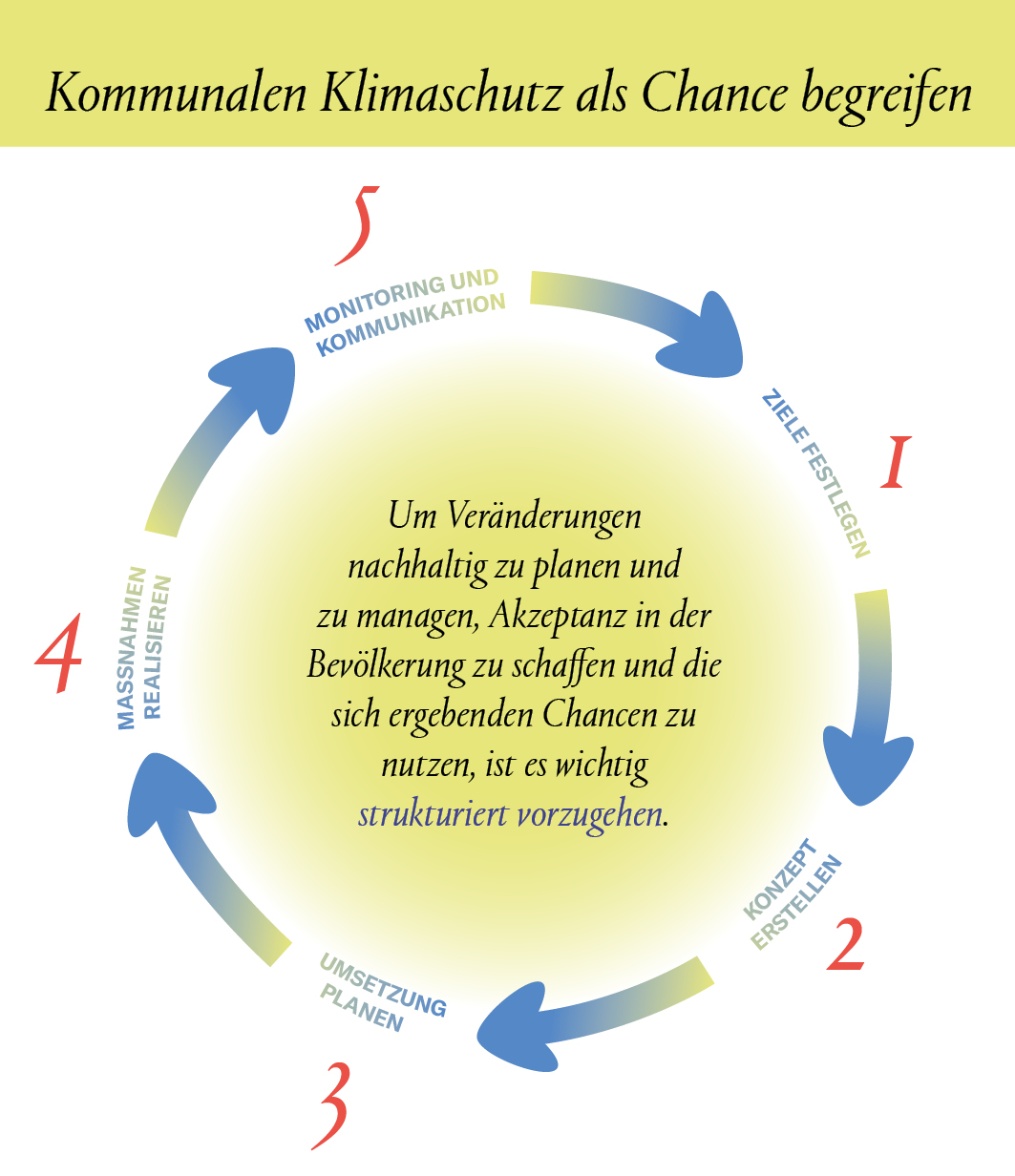 Um Veränderungen nachhaltig zu planen und zu managen, Akzeptanz in der Bevölkerung zu schaffen und die sich ergebenden Chancen zu nutzen, ist es wichtig strukturiert vorzugehen: