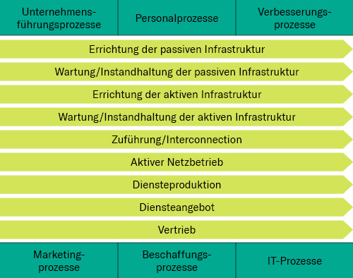 Hier stehen vor allem die Einbindung der relevanten Dienstleister (White-Label-Partner, Tiefbauunternehmen etc.) sowie die Strukturierung der hieraus resultierenden Schnittstellen und die Eingliederung der benötigten kundenseitigen Abrechnungsprozesse im Vordergrund.