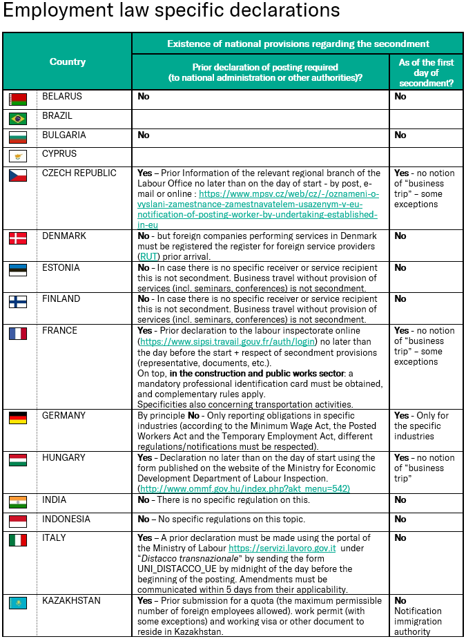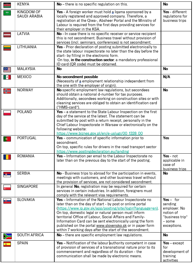 Please find hereafter more detailed information about secondment in selected countries: Secondment regulations in selected countries