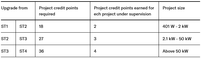 • By obtaining project credit points through experience gained from design, installation and commissioning, operation and maintenance of solar PV projects accounting for a minimum of 25 points. The balance of the points can be obtained through the following: