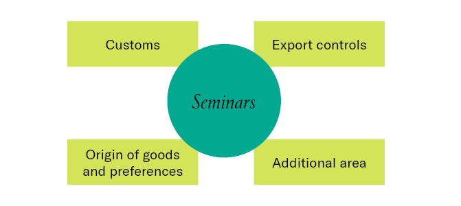We have divided training sessions and seminars designed to cover further legal areas related to foreign trade and excise duties into the following modules: